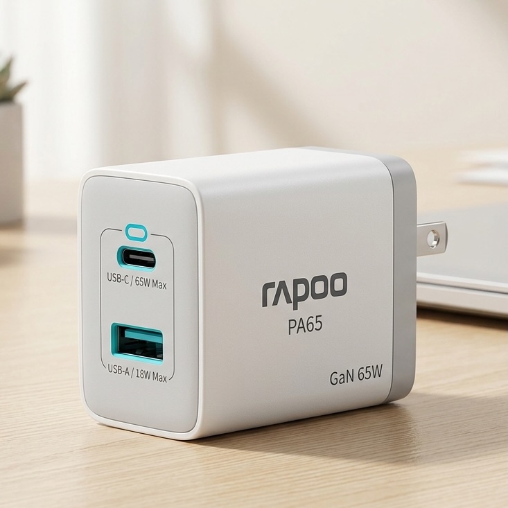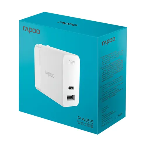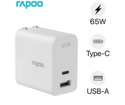 Rapoo Pa65 GaN 65 Watts USB-C +USB Wall Charger